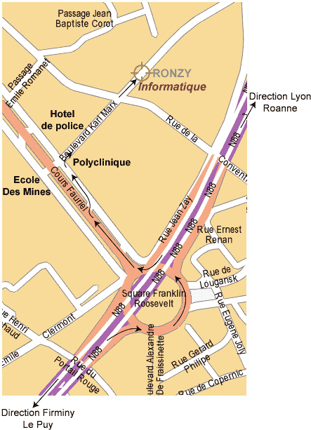 Une fois à Saint-Etienne, prendre la sortie "LE ROND POINT"